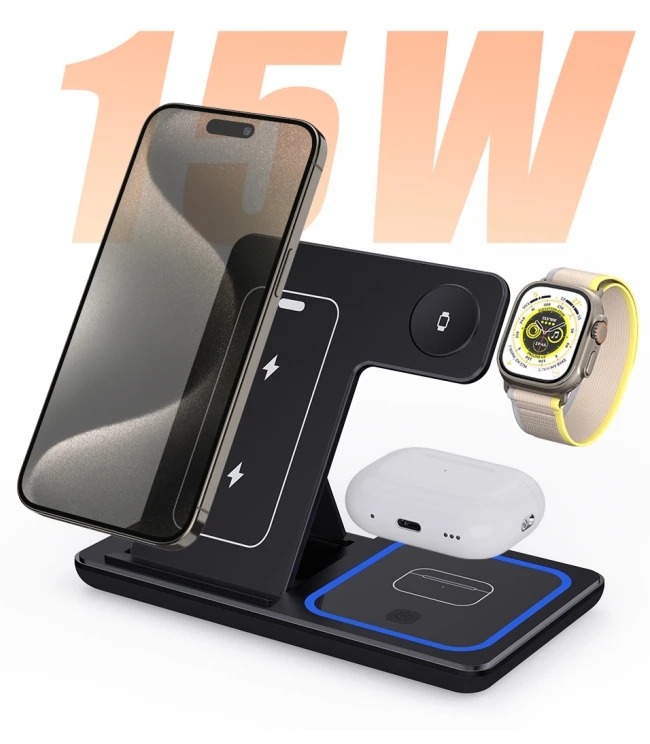 Stay powered and organized — at home, in the office, or on the go — with the 3-in-1 Foldable Wireless Charger, your ultimate everyday charging companion.
